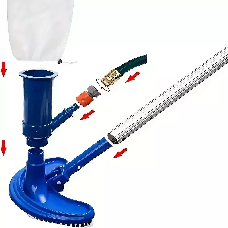 Fácil de usar: A cabeça de vácuo é fácil de anexar a qualquer poste telescópico padrão (não incluído) e pode ser usada com qualquer mangueira de jardim padrão.