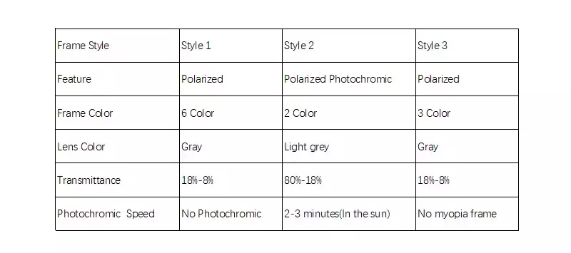 Estilo 3 (lente polarizada) Cor da armação: cinza preto (sem moldura de miopia)