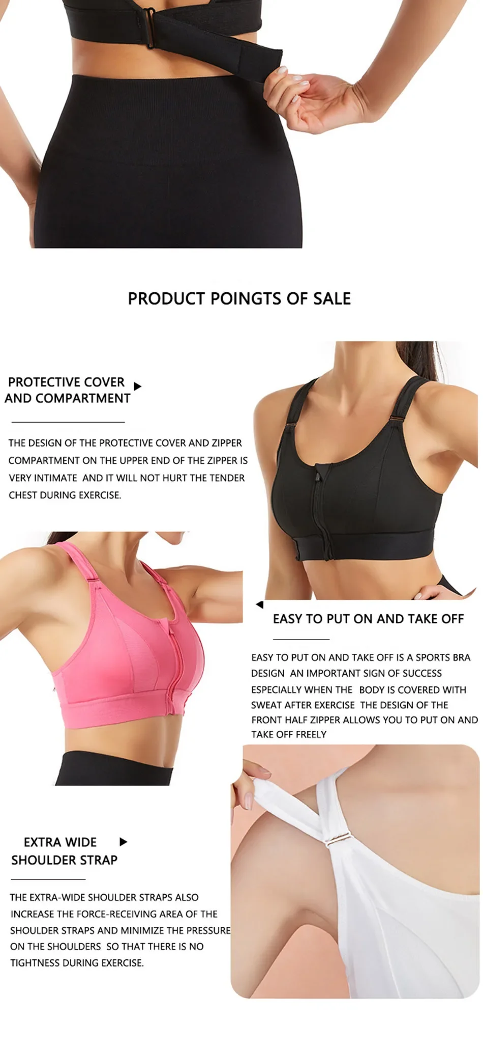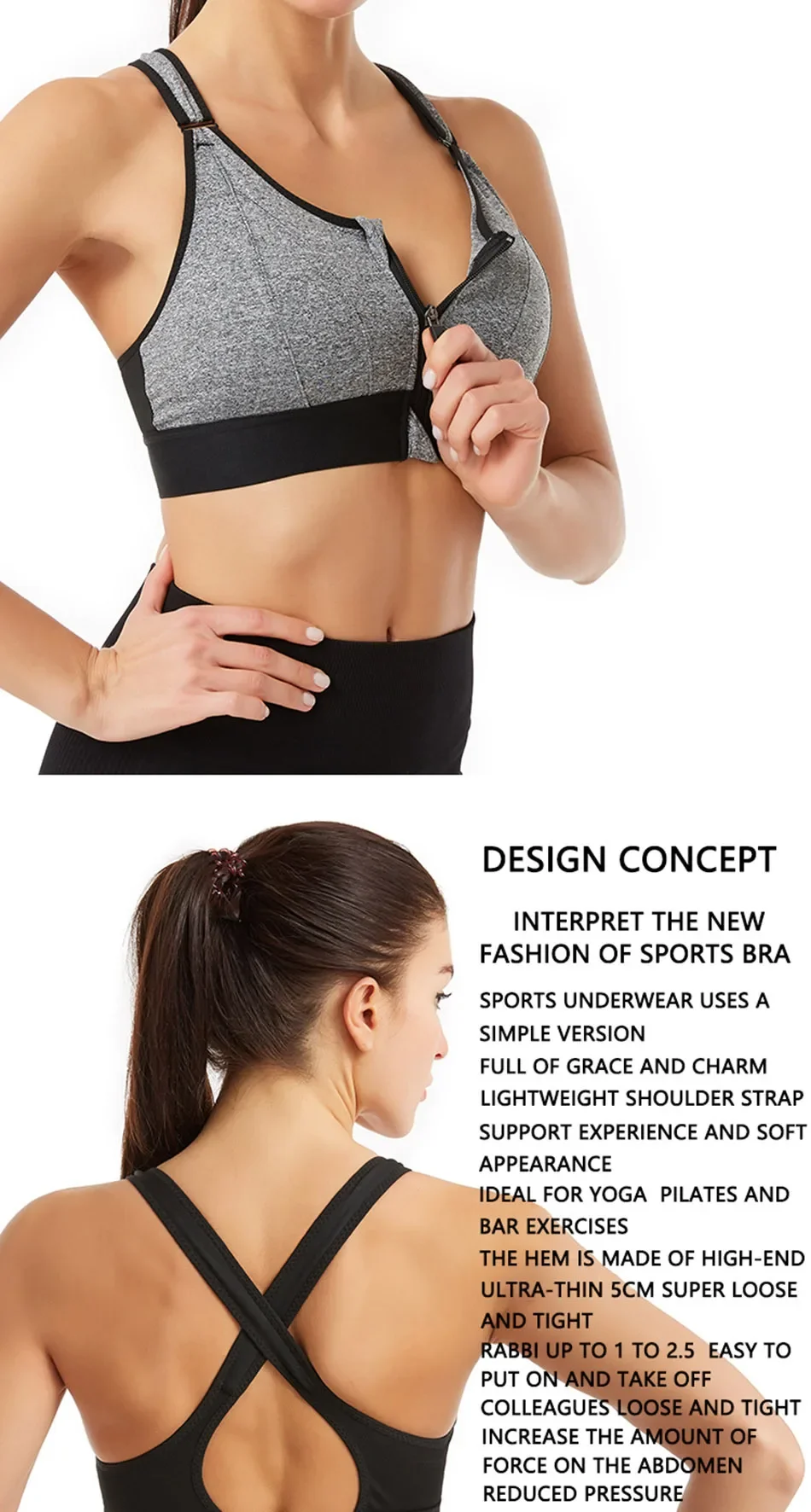 • Recurso de zíper frontal:O recurso de zíper frontal permite fácil acesso à amamentação, tornando-o uma escolha prática para mulheres grávidas e novas mães em movimento.